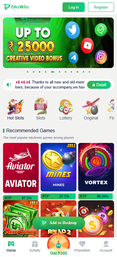 Diu Win often offers bonuses and rewards that can boost your wallet balance: